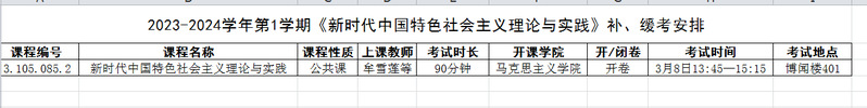 2023-2024学年第1学期《新时代中国特色社会主义理论与实践》补、缓考安排