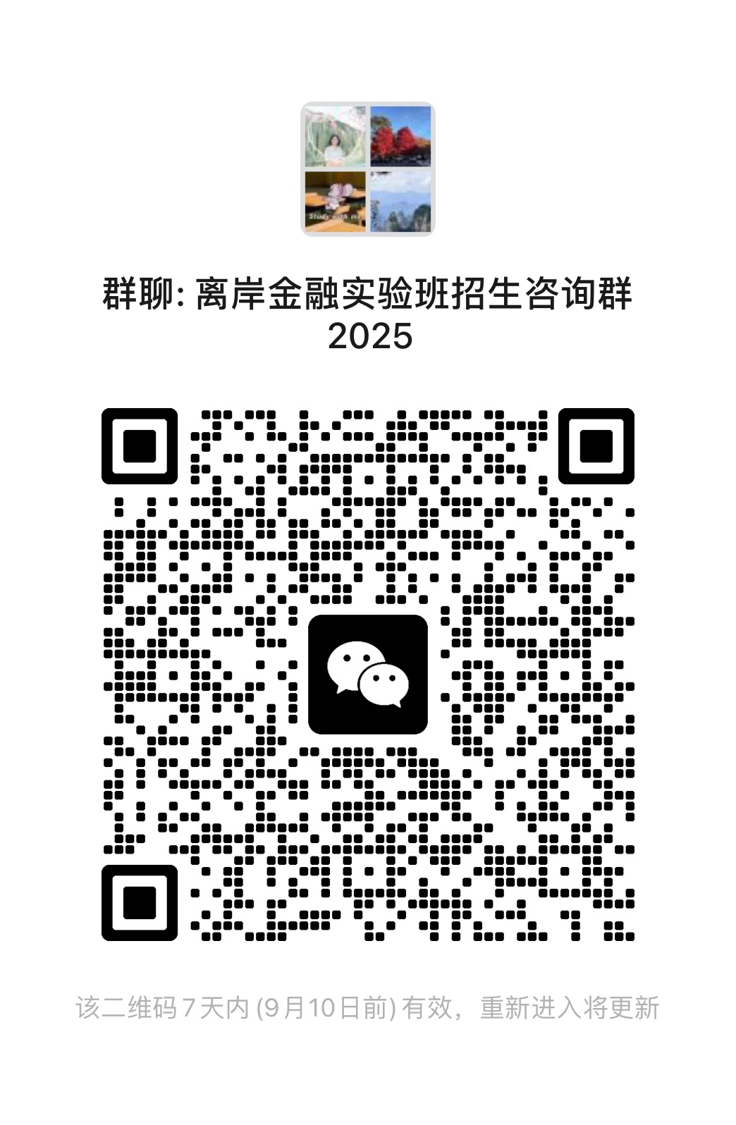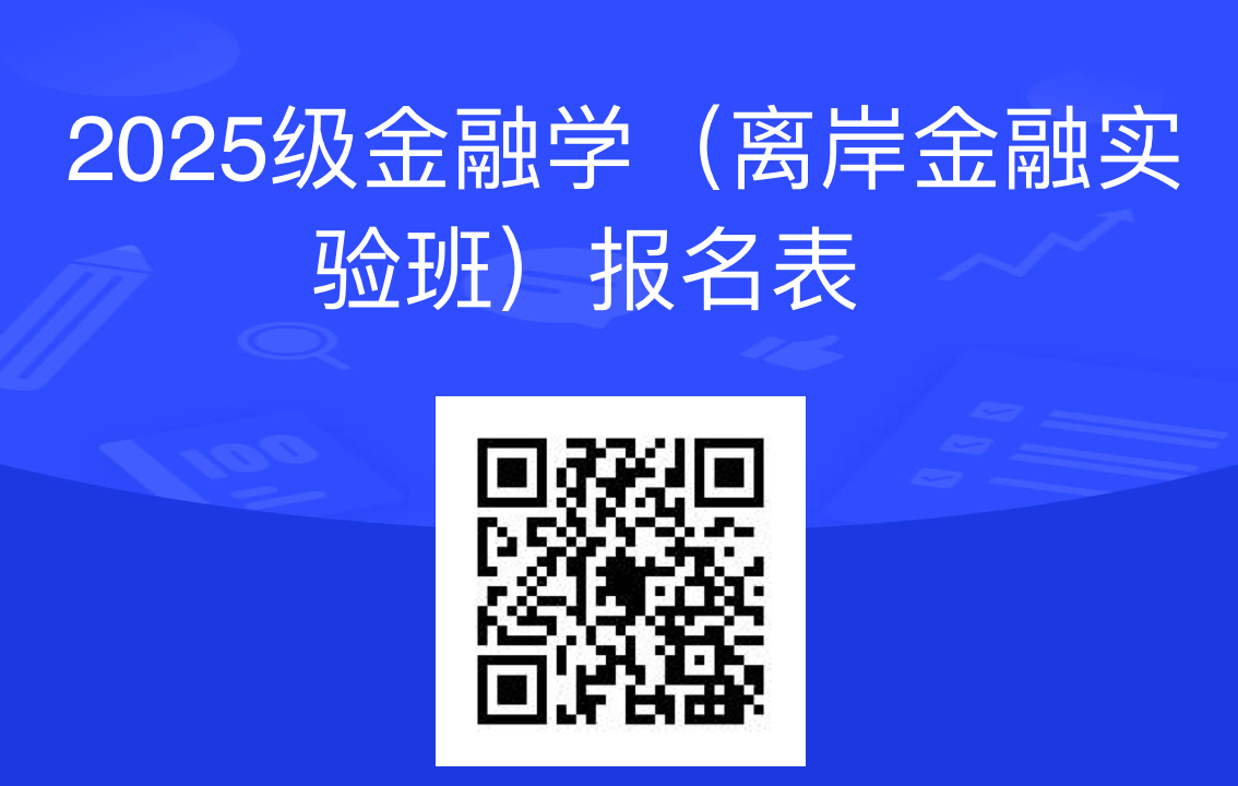 请扫描下方二维码,填写《2025级金融学(离岸金融实验班)报名表》,提交报名信息。报名截止时间:数学英语分级考结束当天晚上21:00(分级考计划是9月14日,若有改动,以实际考试结束当天为准)。