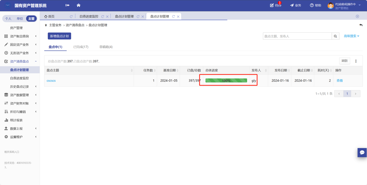 点击查看,可以看到每个单位的整体盘点计划,以及盘点清单