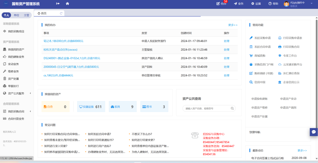 第一步:普通教职工点击【资产公共服务】→【资产调剂平台】,进入资产调剂平台页面,如下图所示: