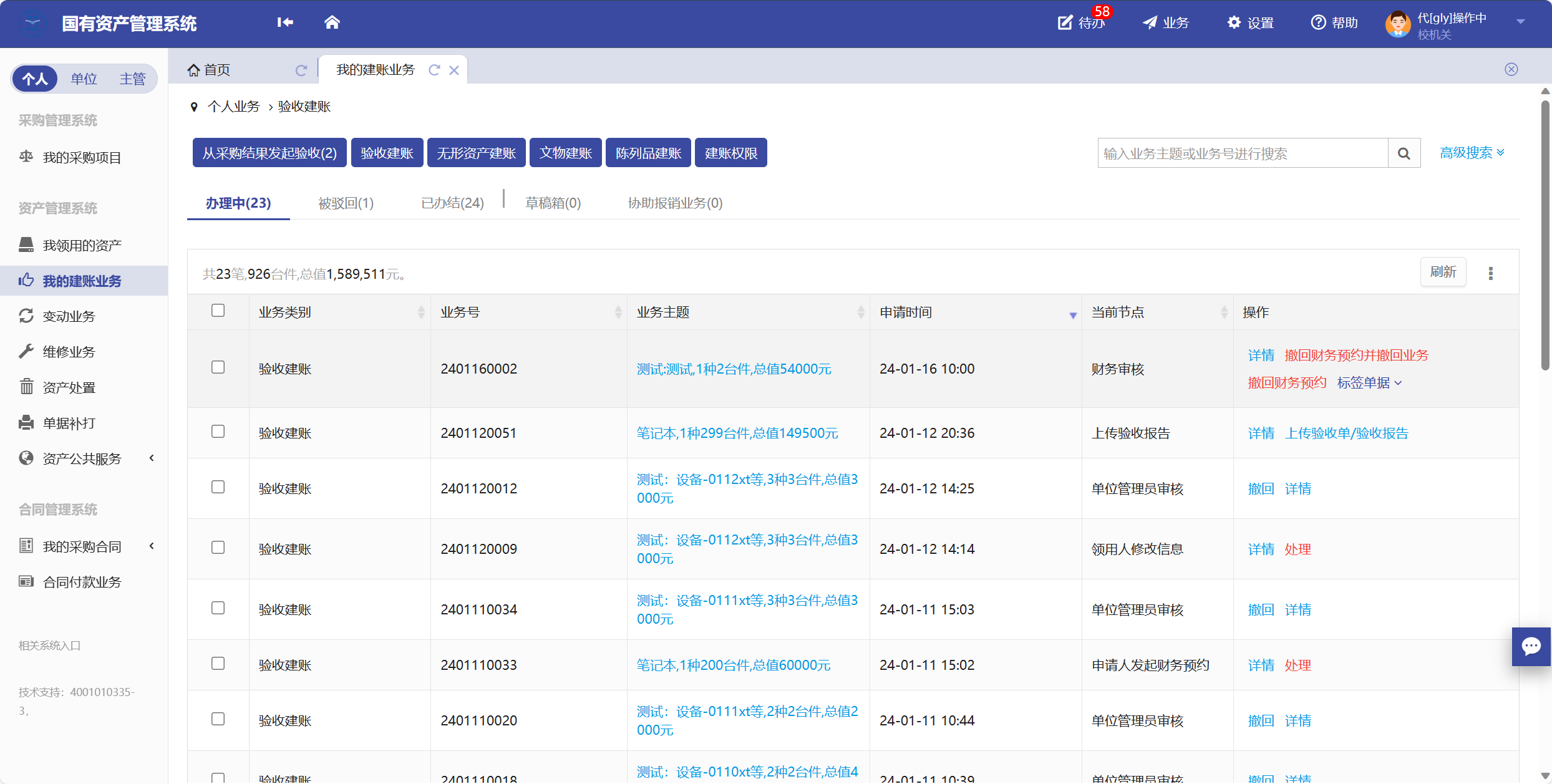 4、验收建账主要信息填写错误将驳回修改后重新提交;