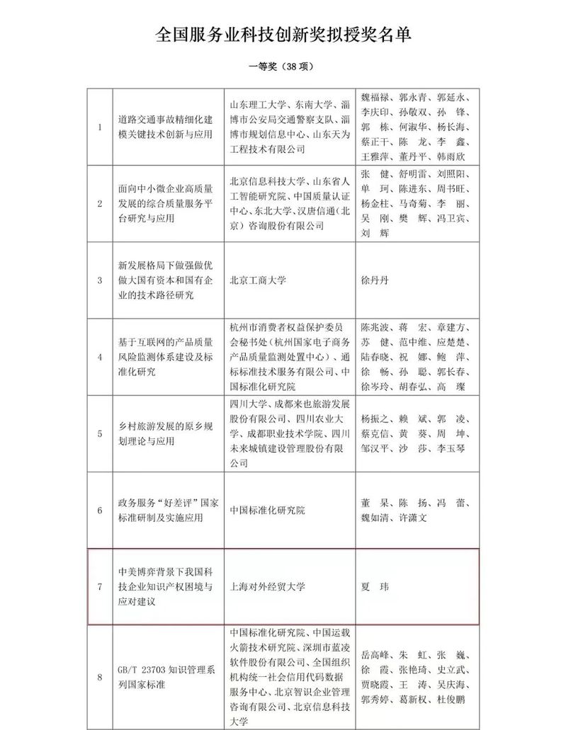 近日,“第十四届中国商业联合会服务业科技创新奖”结果揭晓。我校国际经贸创新与治理研究院副院长、学校办副主任(兼)夏玮副教授的《中美博弈背景下我国科技企业知识产权困境与应对建议》荣获一等奖。