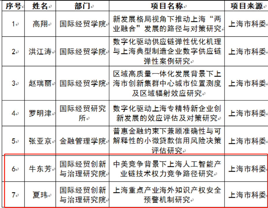 日前,上海市2023年度“科技创新行动计划”软科学研究项目经公开申报、形式审查、专家评审、立项公示等程序,并经上海市科学技术委员会批准,我校共有7个项目获得立项,立项数创历史新高。其中,我院夏玮、牛东芳老师申报的2个课题获得立项。