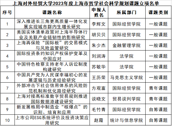 学校10项课题获2023年度上海市哲学社会科学规划课题立项